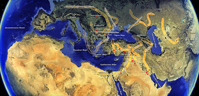– Групата от (прото-) траки, които хилядолетие след първите започват също да се изселват към Азия, участват в създаването на Шумер, след завладяването на Месопотамия. След това от тези племена се отделят хетите, както и тези, които в Африка се появяват главно като фараони и жреци и създават Египет на фараоните.